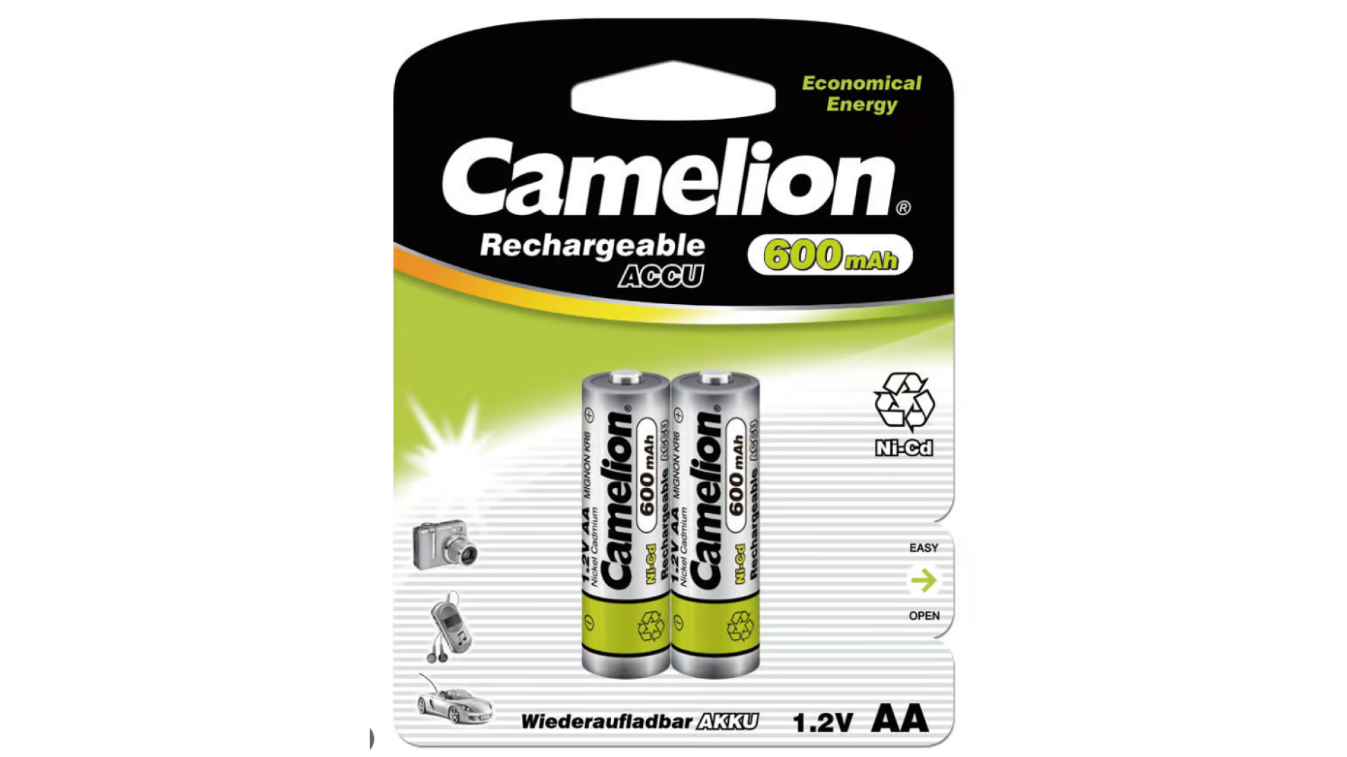 • Camelion Rechargeable Battery 2*AA 600mAh Ni-MH